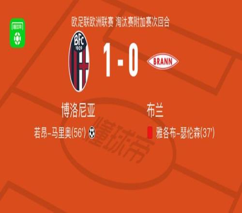 北京时间2月27日欧足联欧洲联赛 淘汰赛附加赛次回合,博洛尼亚对阵布兰。博洛尼亚若昂-马里奥破门。最终比分博洛尼亚 1-0 布兰。两回合总比分博洛尼亚2-0布兰。