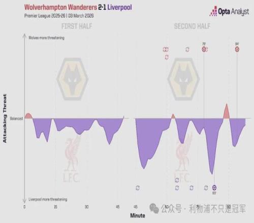 数据上,利物浦本场射门19次,射正7次,创造了1.83的期待进球,均高于对森林的10射4正,xG1.73。场面上,利物浦在客场也没有出现对森林上半场那种失控的情况,今天狼队直到第78分钟才有第一次射门,结果就进球了,然后94分钟又被一次折射球绝杀。