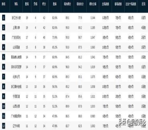 CBA第一阶段完整排名:广厦上海争第1中游竞争惨烈四川0胜23负