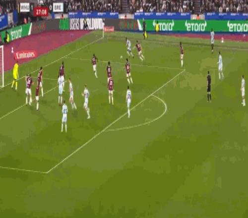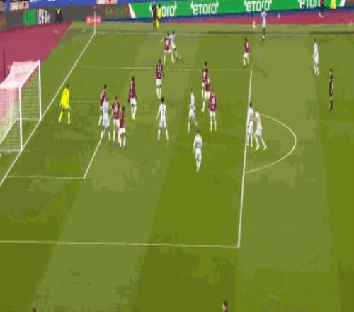 第20分钟,先拔头筹,鲍恩门前得分,西汉姆联1-0
