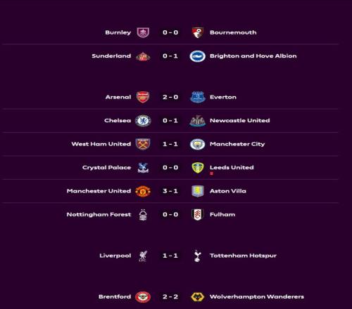 北京时间3月17日凌晨,布伦特福德2比2战平狼队,英超第30轮十场比赛全部结束。阿森纳2比0击败埃弗顿,而曼城造访伦敦则是1比1遭西汉姆联顽强逼平,阿森纳借此机会将积分领先优势扩大至9分(多赛一场),而曼联3比1力克阿斯顿维拉,积54分领先后者3分,坐稳第3。利物浦主场遭热刺1比1绝平,未能反超维拉,但仍超越本轮0比1负于纽卡斯尔联的切尔西,升至第5,蓝军则排名第6。