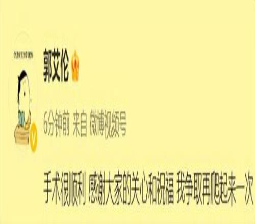 郭艾伦在做完手术之后,也是在第一时间向大家报了平安,说自己的手术十分顺利!已经进入休养康复阶段,让大家不要担心。