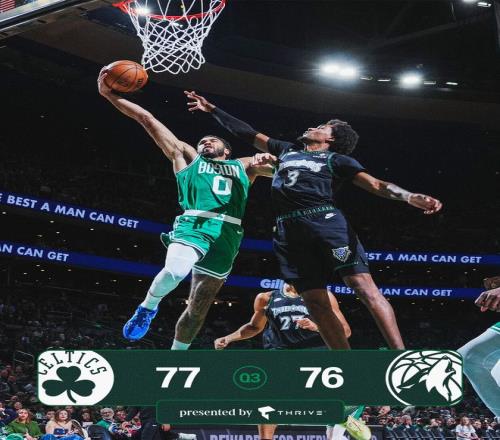 森林狼队的爱德华兹继续伤停。开场后布朗迅速进入状态,一人独取7分率队以11-2领先。迪文琴佐回应三分带领球队连追6分迫近,布朗保持攻击性,连投带罚又拿4分,首节还有3分30秒时凯尔特人队以17-10领先。海兰德突破还击,普理查德连进两球,首节结束时凯尔特人队以23-14领先。布朗单节得到11分。
