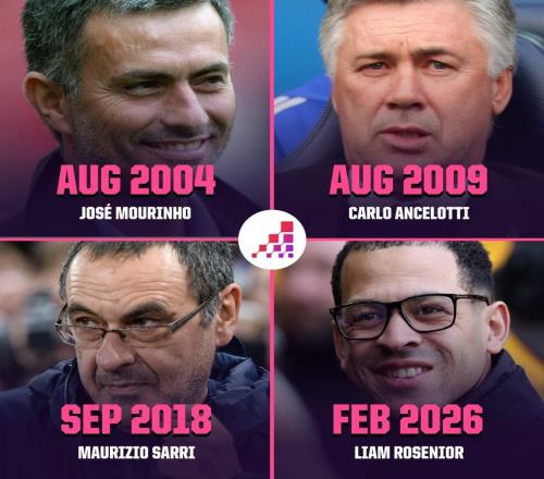执教切尔西前四场英超全胜,罗塞尼尔成队史正式主帅第四人